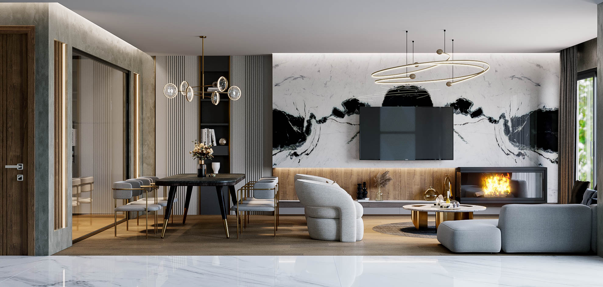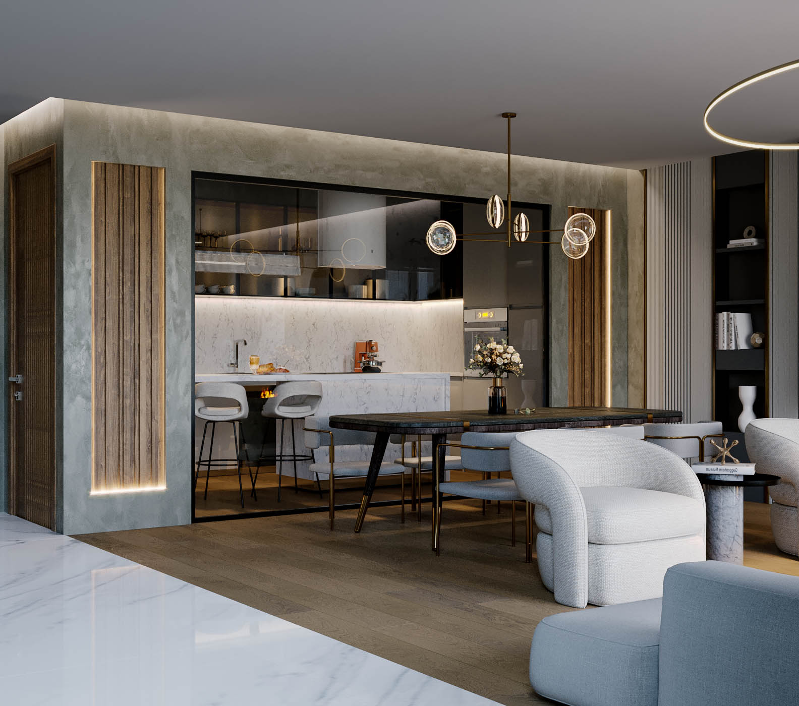 A ve B tip olmak üzere iki farklı villa tipi tasarımı projelendirilmiştir. Dış cephe ve iç mekanın birbiri ile uyumunun devam ettiği, modern ve aynı zamanda cesur bir tasarım anlayışı ele alınmıştır. A tip villalar aile büyüklerinin yaşam alanları olurken, B tip villalar da ailenin genç çocuklarına özel tasarlandı. Aile büyükleri için tasarlanan villalarda, lokal yerlerde kullanılan gold, bronz ve çıtalama uygulamaları ile gösteriş sağlandı. Aile gençlerinin villalarında ise daha spor ve modern bir yaklaşım sergilendi.